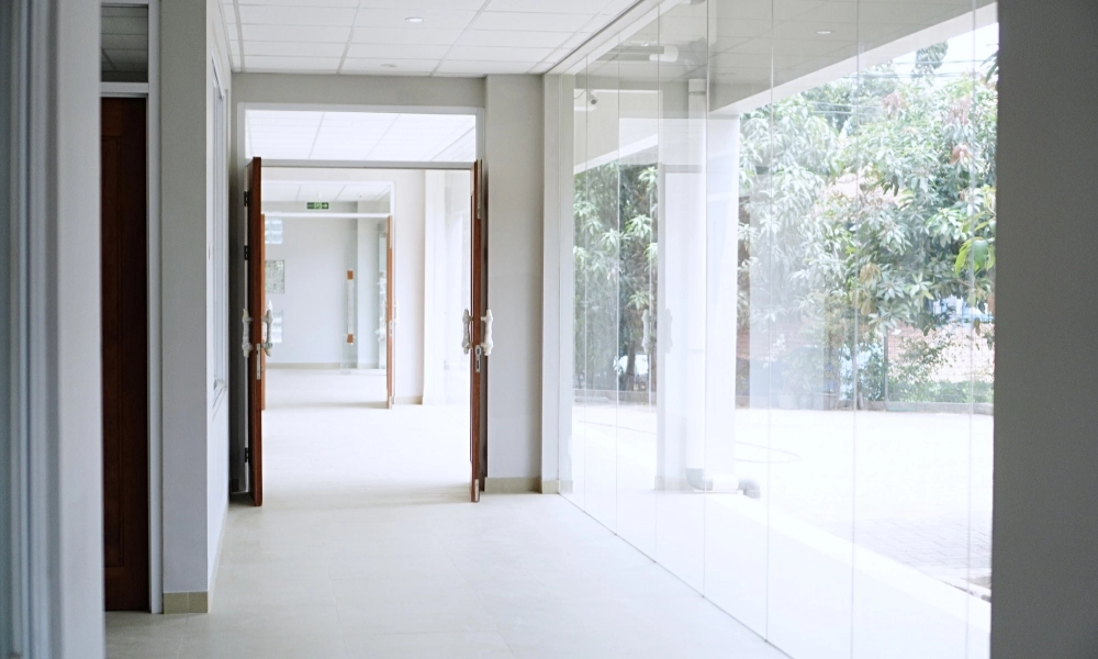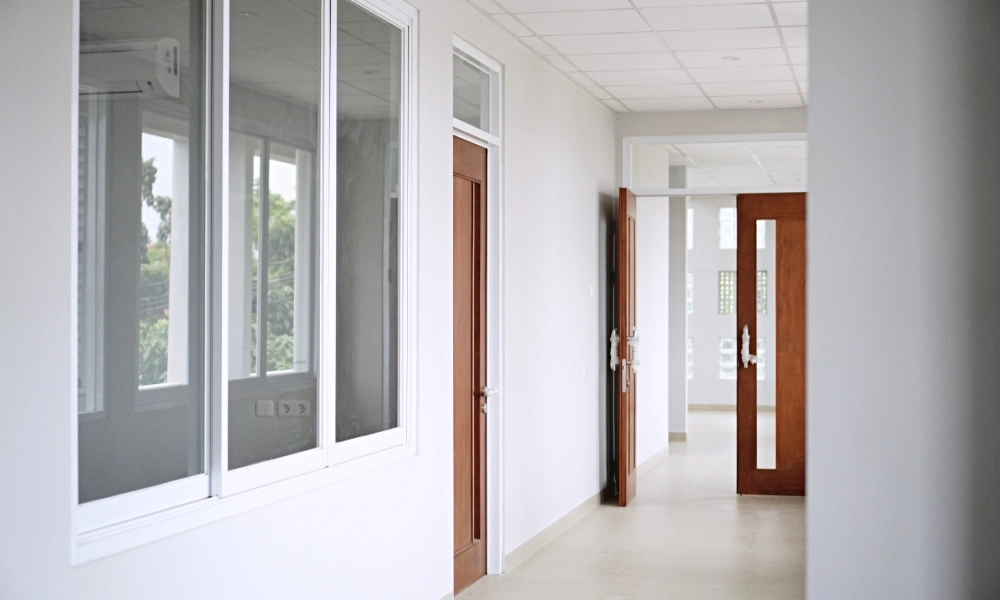 2. Pencahayaan Optimal: Curtain wall dan jendela aluminium memaksimalkan pencahayaan alami, menciptakan suasana belajar yang cerah dan positif.